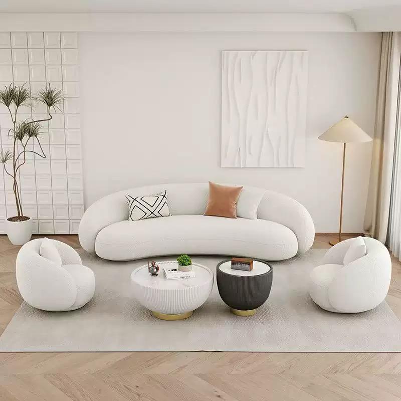 Divano componibile in stile scandinavo a tre posti con divano componibile in Cashmere tessuto crema spugna quadrata divano da salotto curvo senza barriere