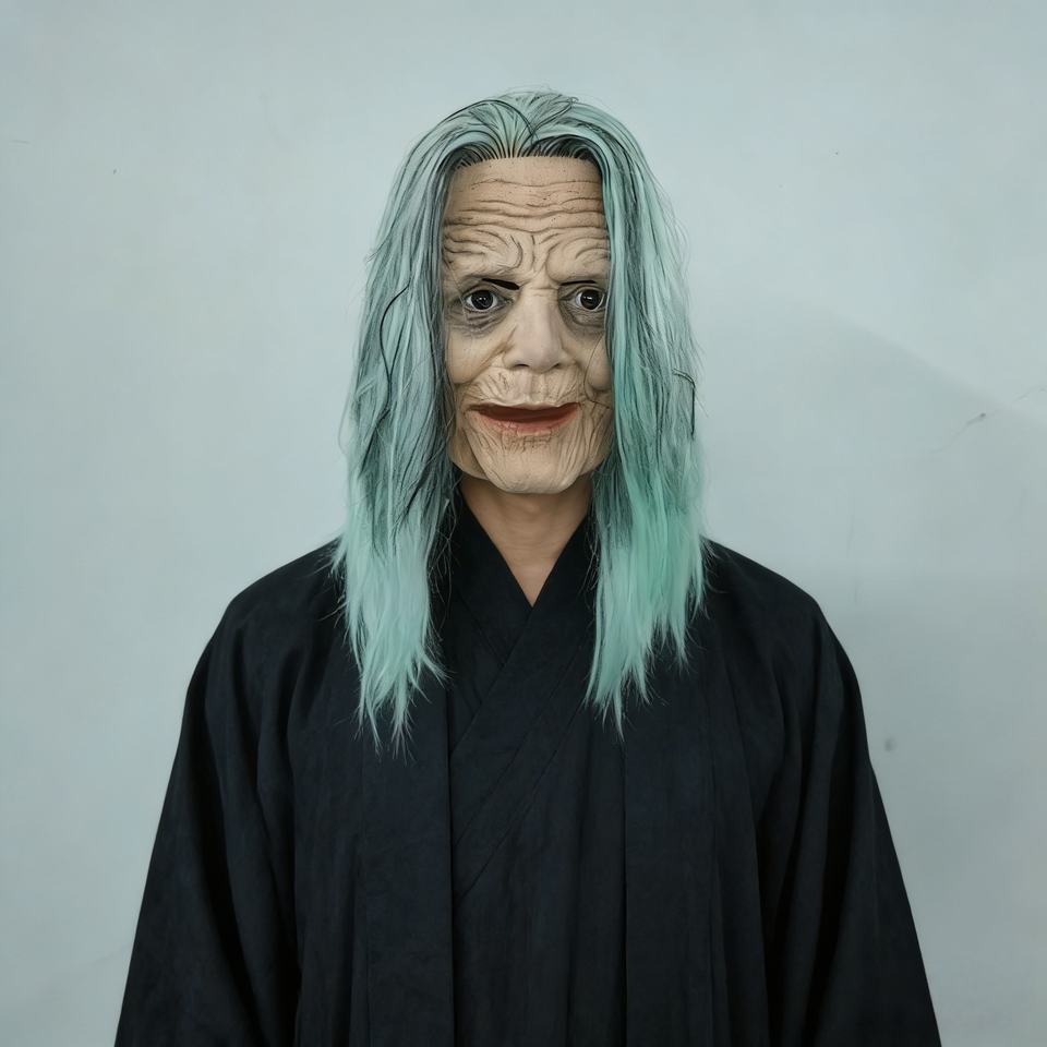 Maschera da Strega Spaventosa con Capelli Lunghi Grigi - Maschera Realistica in Lattice per Costume di Halloween per Adulti, Accessori per Feste e Cosplay