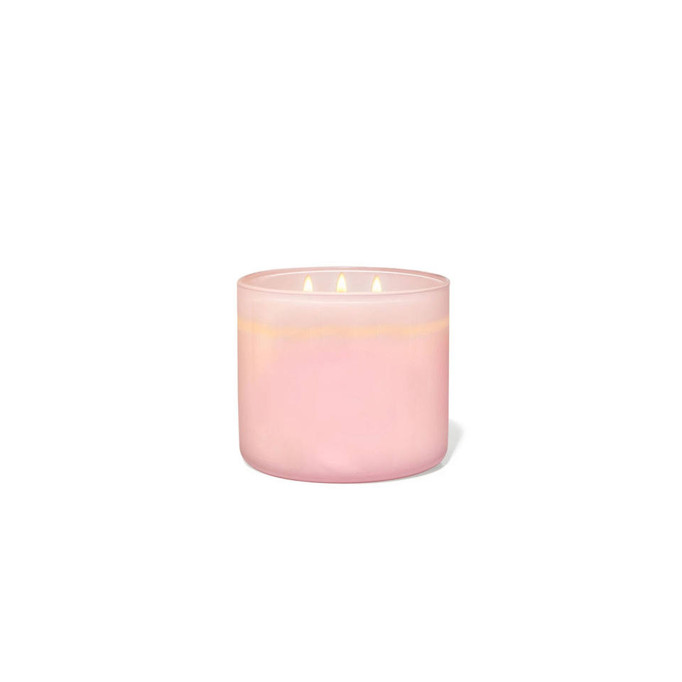 Candela Profumata a 3 Stoppini in Cera di Soia Rosa in Barattolo di Vetro con Fragranza di Oli Essenziali