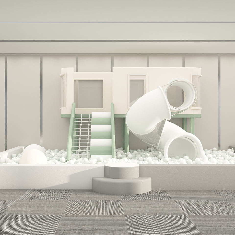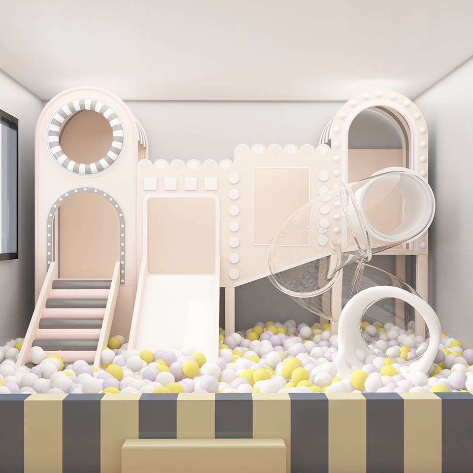Centri commerciali per la scuola uso domestico interattivo resistente alle intemperie palla Pit Climbing scivolo per bambini parco giochi al coperto con pannelli di sicurezza ai bordi