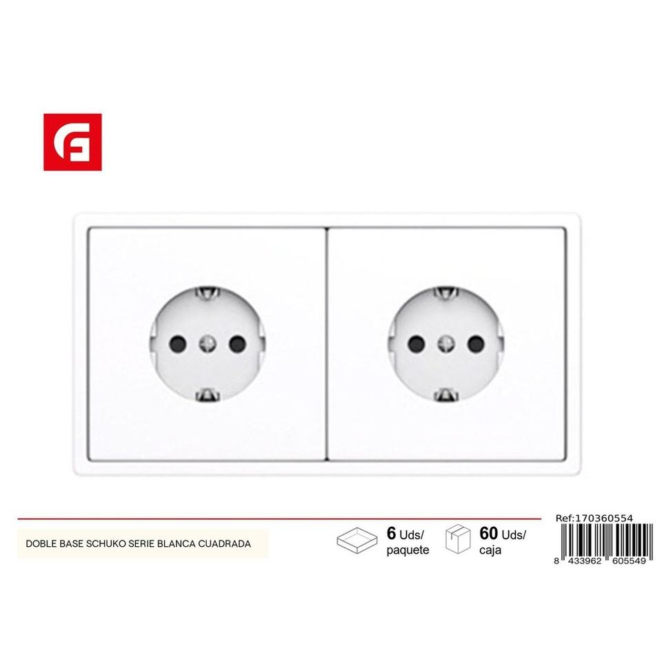 Base doppia presa Schuko, serie bianca quadrata, per l'elettricità