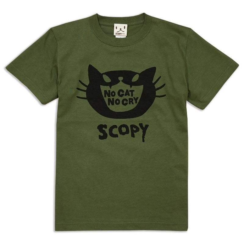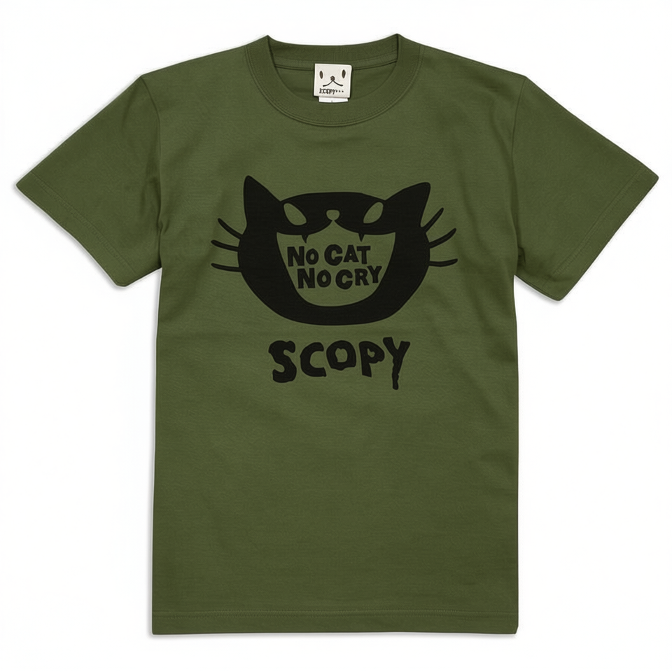 T-shirt Scopy Olive Cat Print No Cat No Cry a maniche corte unisex