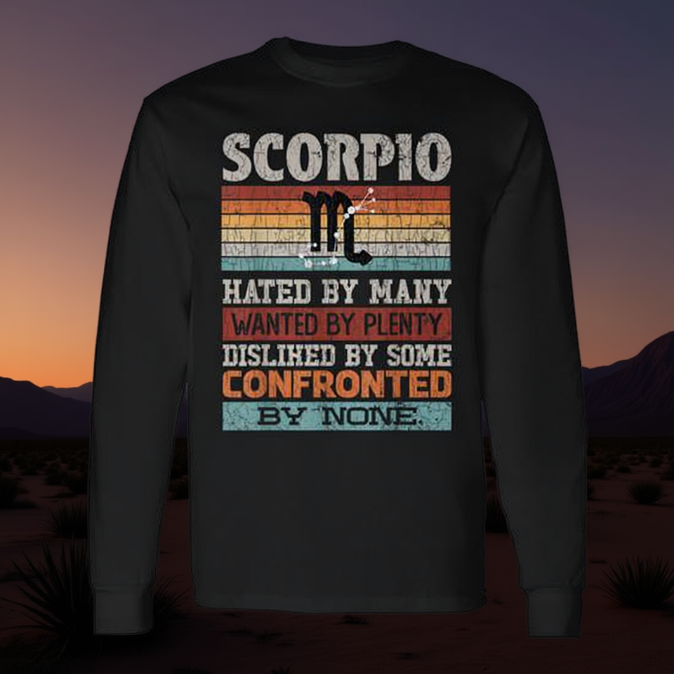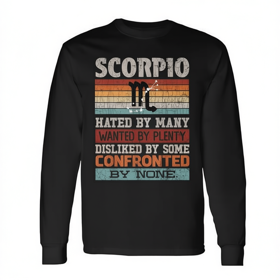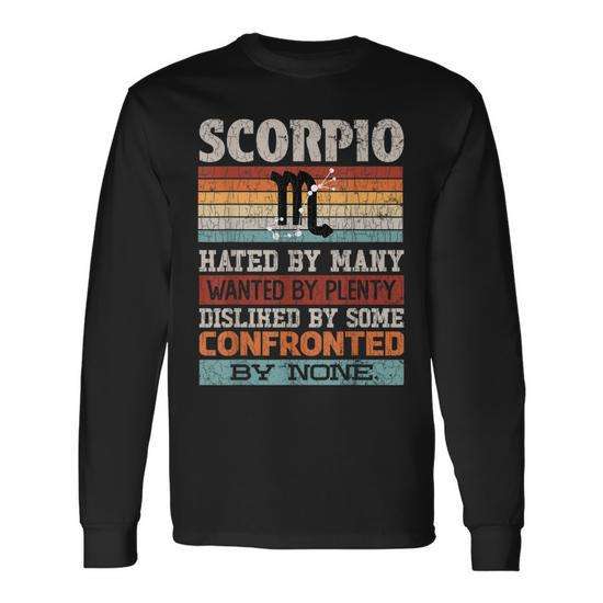 Scorpio Zodiac Sign Graphic Long Sleeve T-Shirt Hated By Many Wanted By Plenty Confronted By None