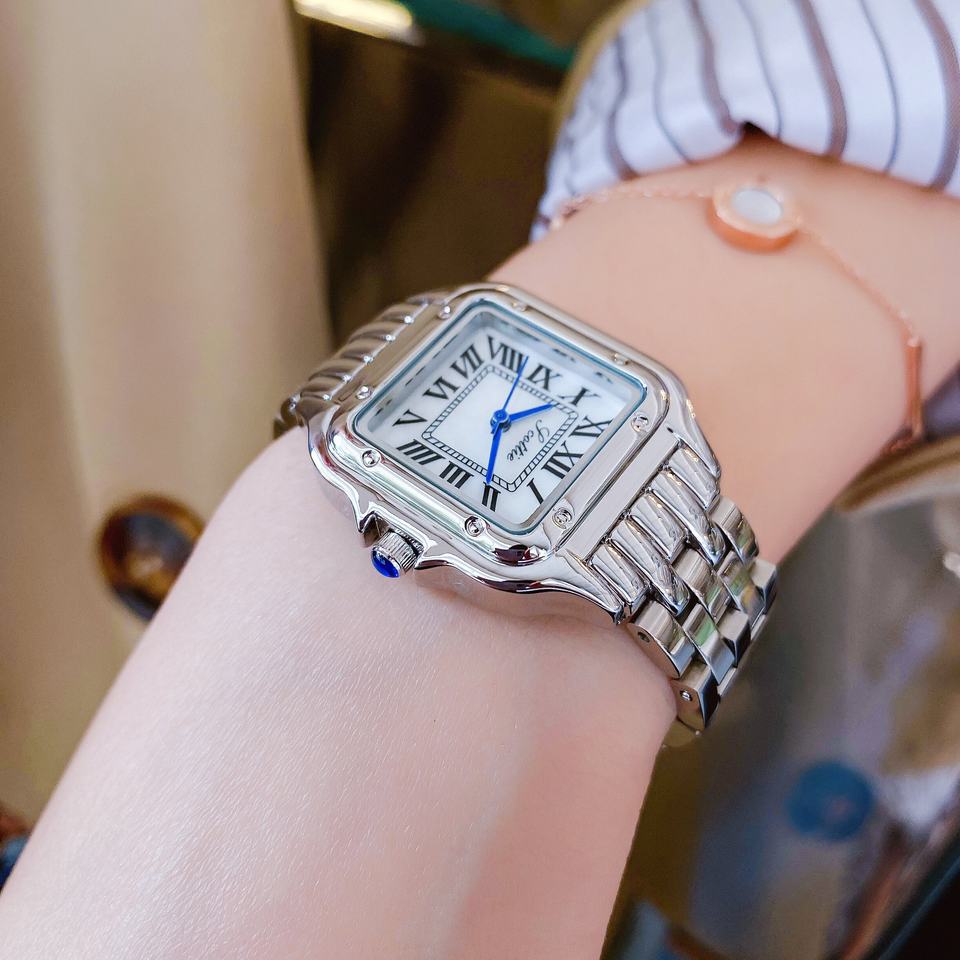 Scottie 9100 Luxury Lady Quartz Watch for Women New Trendy Elegant Design Waterproof Yellow Gold Stainless Steel Band Square