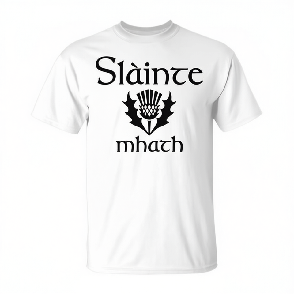 T-shirt Scottish Thistle con design della bandiera scozzese Slainte Mhath, bianca, taglia unisex per adulti