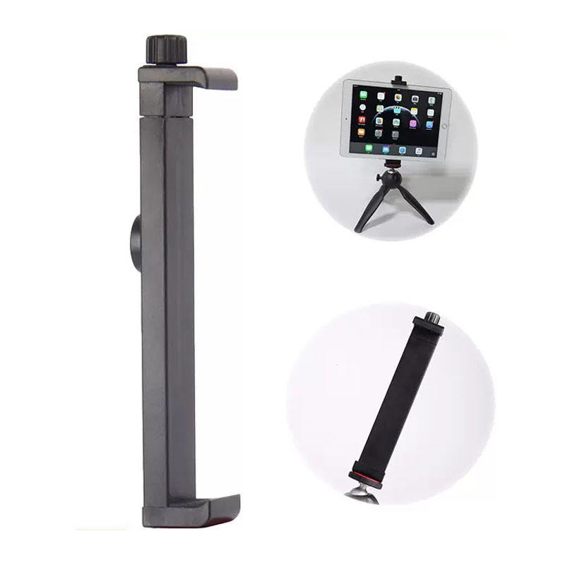 Supporto per Tablet Sottile in Plastica con Doppia Presa a Freddo da 14 Pollici Regolabile con Vite, Clip Universale e Adattatore per Treppiede Telefono