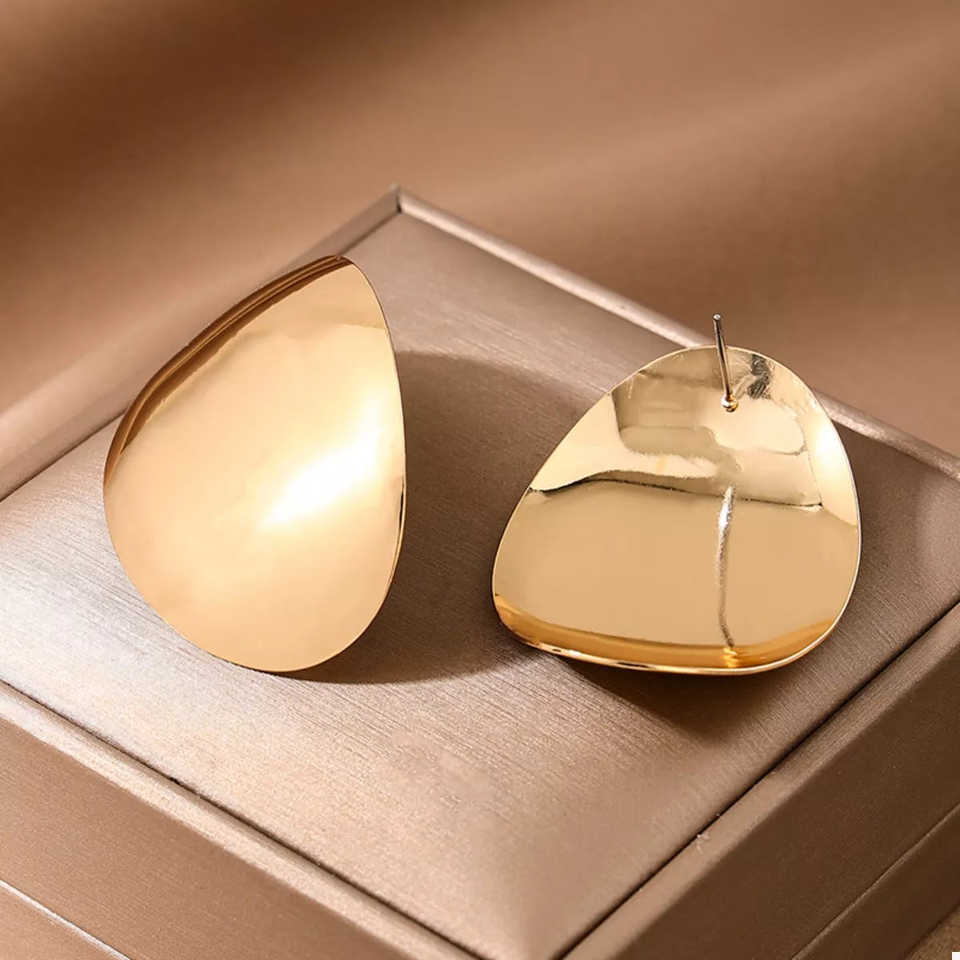 Orecchini a perno geometrici dorati scolpiti
