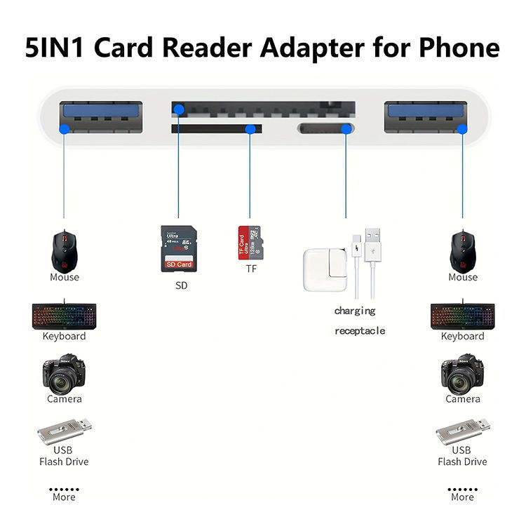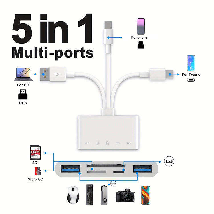 Adattatore per lettore di schede Sd Tf, Lightning Type-C USB a TF & SD Card USB c OTG adattatore per IPhone/notebook supporta dispositivi di tipo C