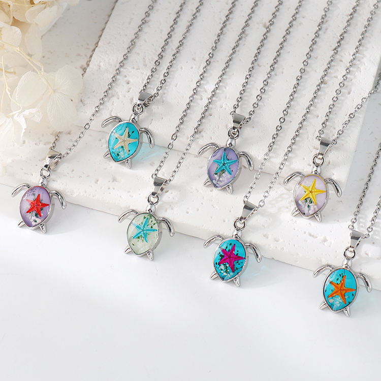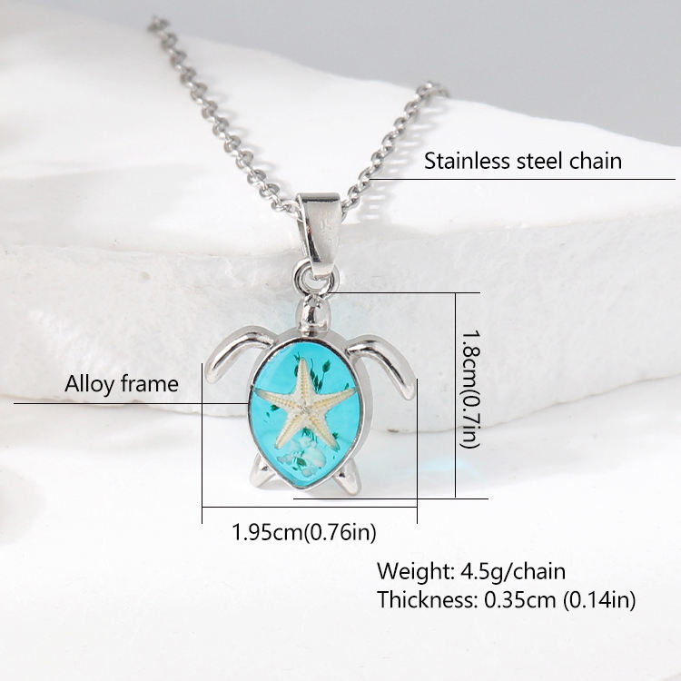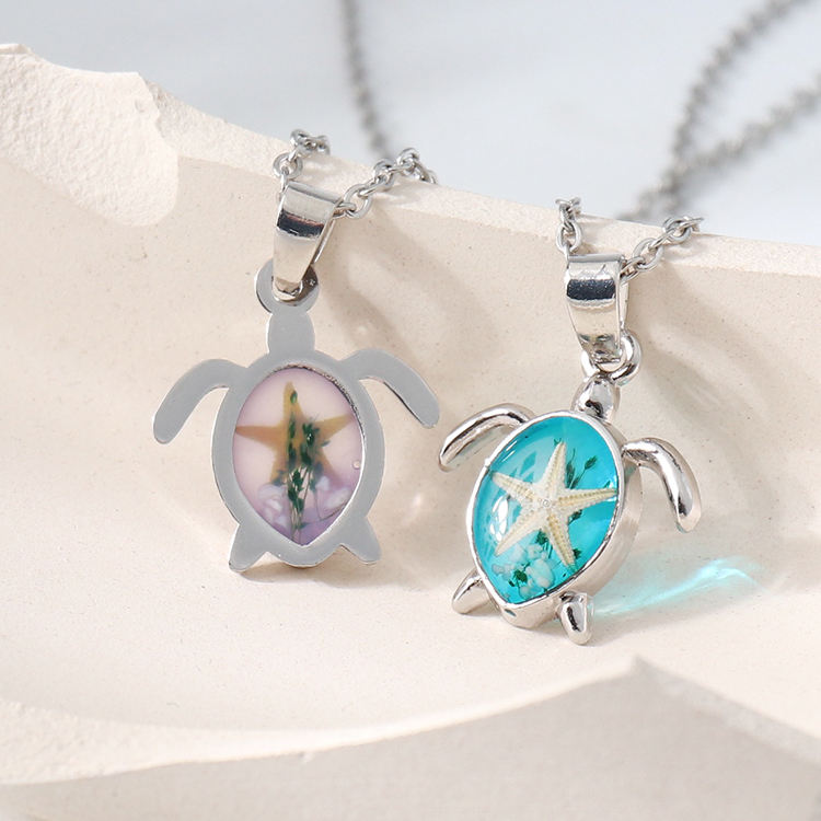 Sea Turtle Pendant Necklace for Women Men Silver Turtle Ocean Sea Life Necklace Pendant with Starfish for Travel Souvenirs