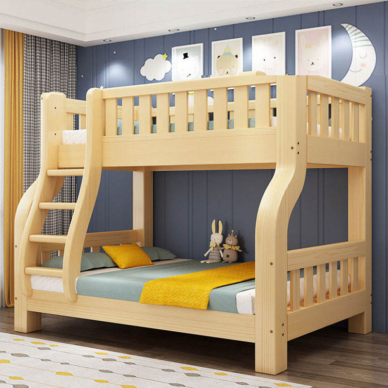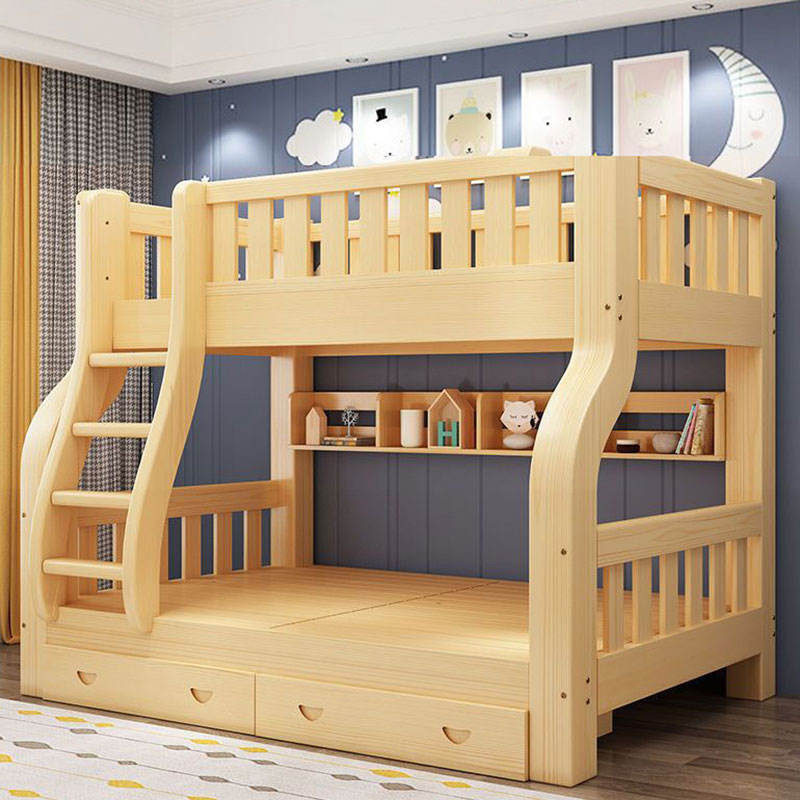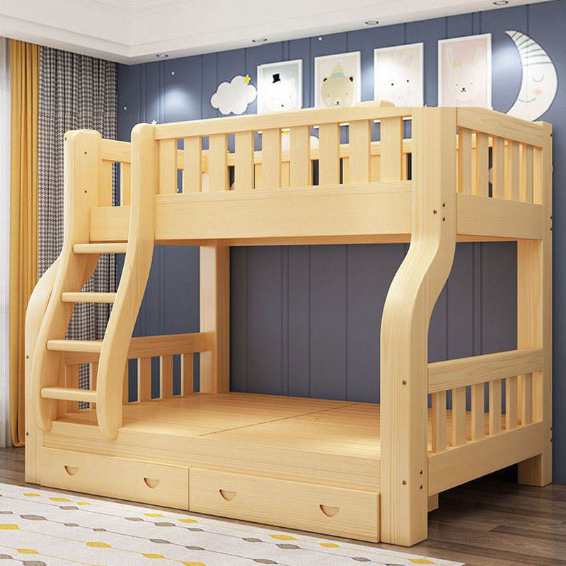 SeaMind Morden Solid Pine Wood Double-Decker Bunk Bed High-Low Mother-Child Bed Upper/Lower Berth Two-Layer Wardrobe Baby Beds