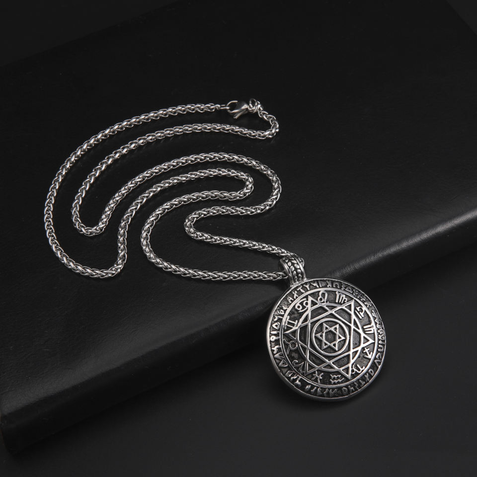 Seal Solomon Six-pointed Star 12 Zodiac Sign Stereoscopic Pendant Hexagram Stainless Steel Men Necklaces