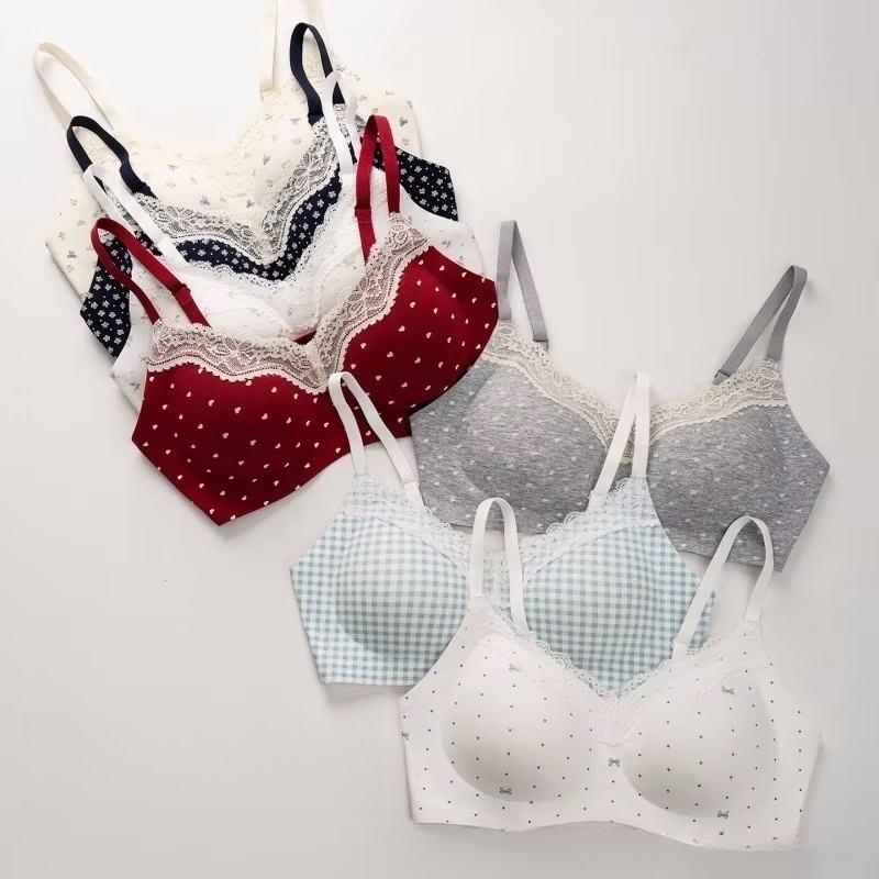Reggiseno da donna senza ferretto, senza cuciture, sottile, fresco, con motivo floreale piccolo, a coppa fissa, effetto push-up, stile Pure Desire, per ragazza, ideale per la layering