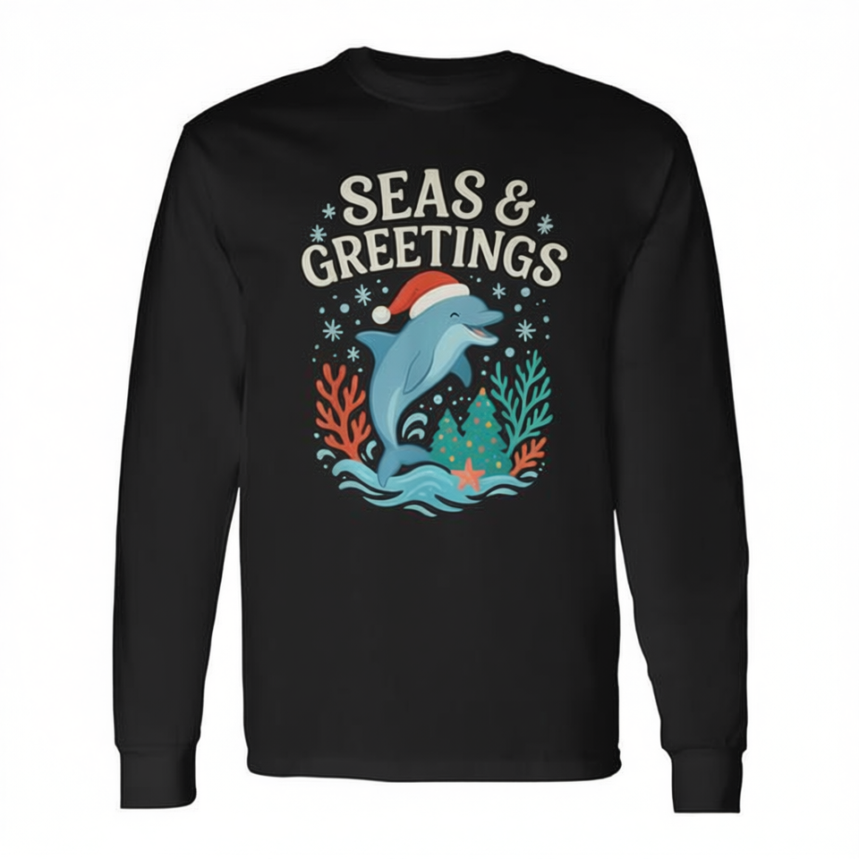 T-shirt a maniche lunghe Seas And Greetings Dolphin Christmas