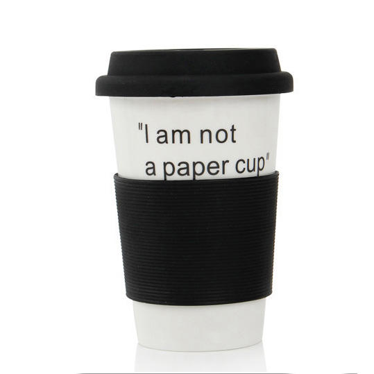 Seaygift Doppia Parete Pianura Bianco Personalizzato logo Decal 11oz Porcellana di Ceramica Asporto Tazza di Viaggio Tazze di Caffè Con Silicone coperchio