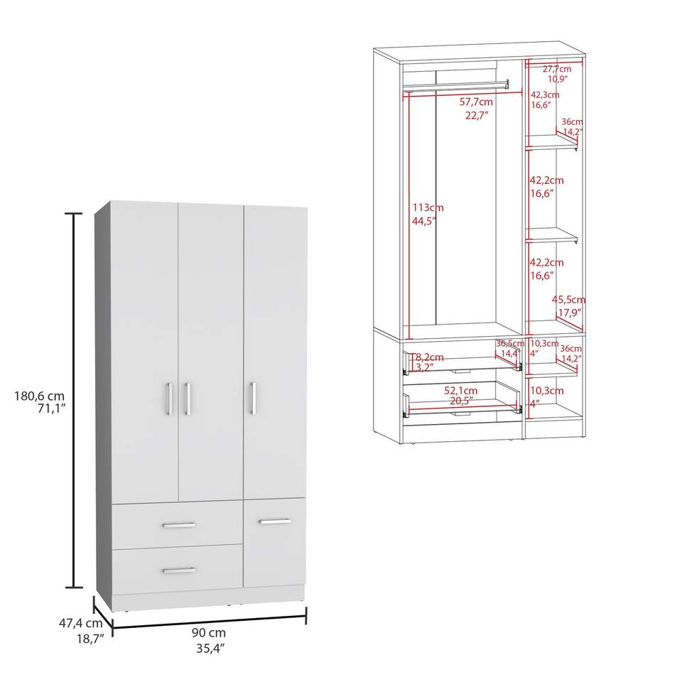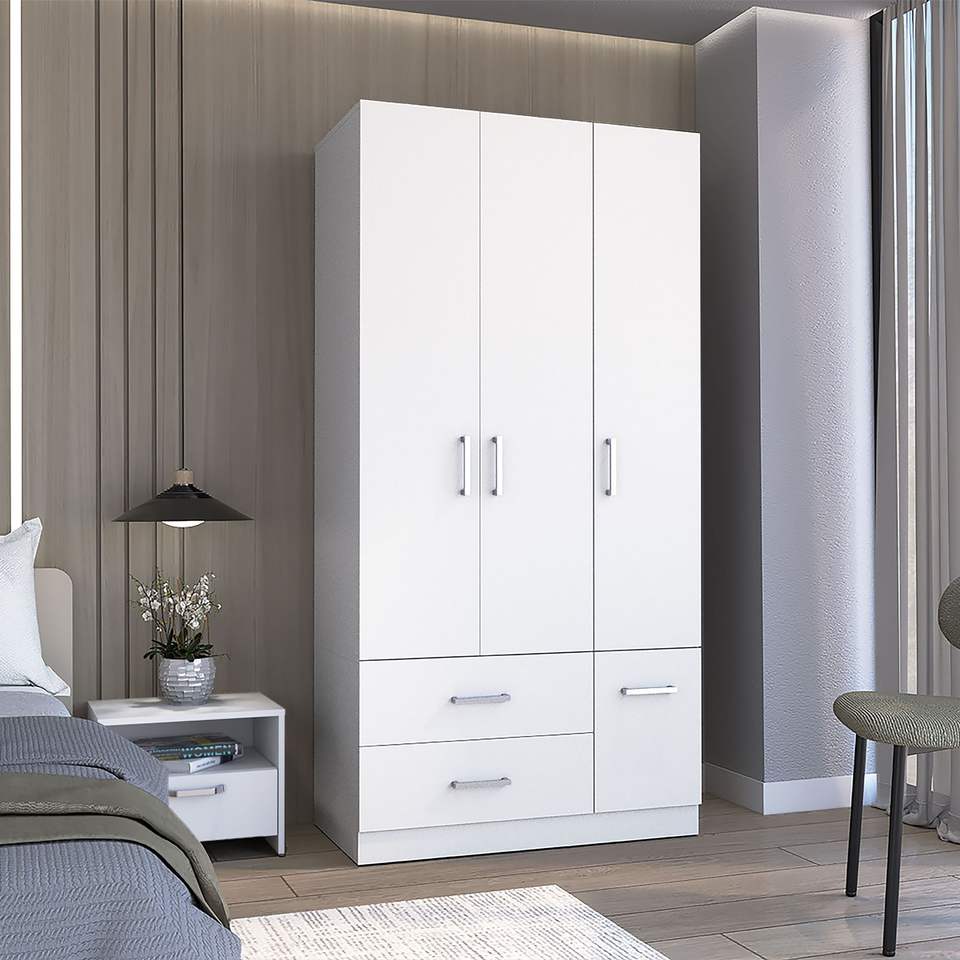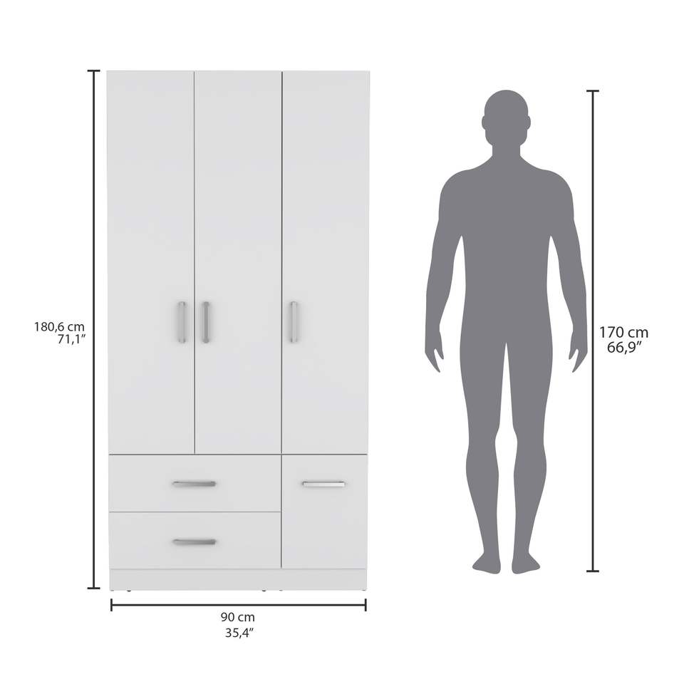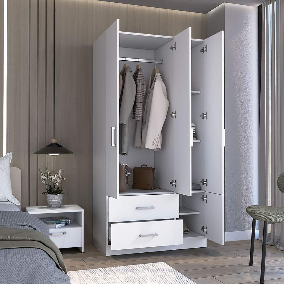 Armadio alto Sebree 71 con 2 cassetti, 4 ante, 3 scomparti, 6 ripiani e asta appendiabiti per la conservazione di vestiti in camera da letto