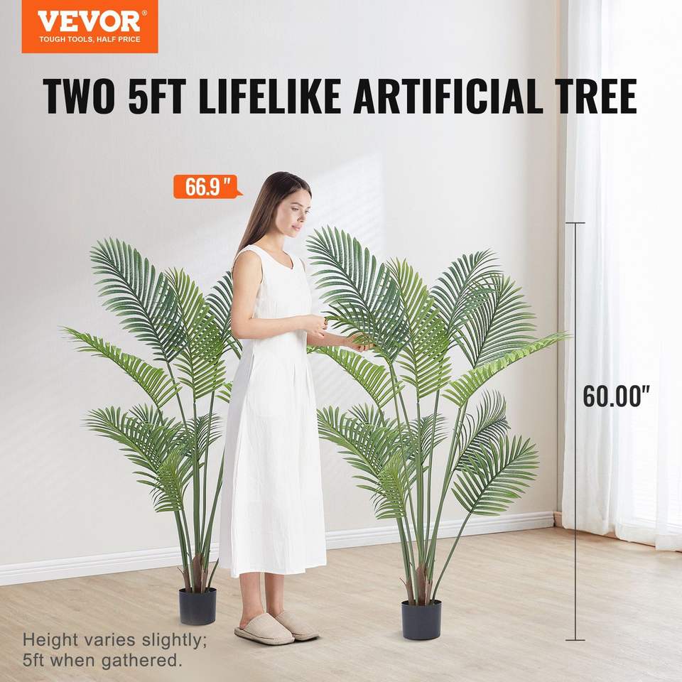 Secure 5 FT Tall Artificial Palm Tree Anti-tip Tilt Protection Low-Maintenance PE Material Lifelike Greenery