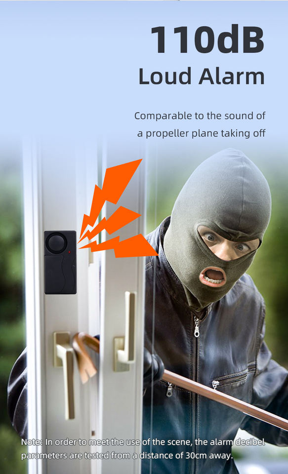 Suono dell'allarme: Il suono dell'allarme da 110 dB è sufficientemente forte da scoraggiare gli intrusi e avvertire le persone nelle vicinanze, migliorando la sicurezza complessiva del luogo.