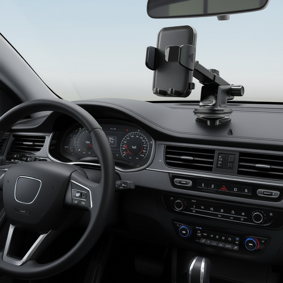 Supporto per Auto con Clip Regolabile e Presa Sicura C055, Supporto Universale per Telefono da Parabrezza, Design in Plastica Rotante