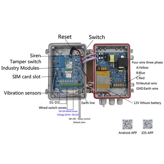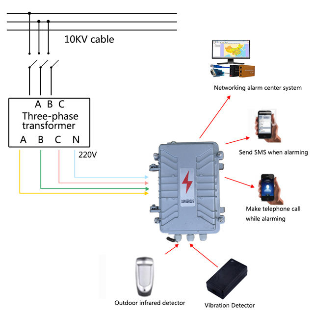 Sistema di allarme di sicurezza tre fasi a quattro linee di rilevamento 4g Sms sistemi di allarme per la mancanza di alimentazione Wireless cavo trasformatore
