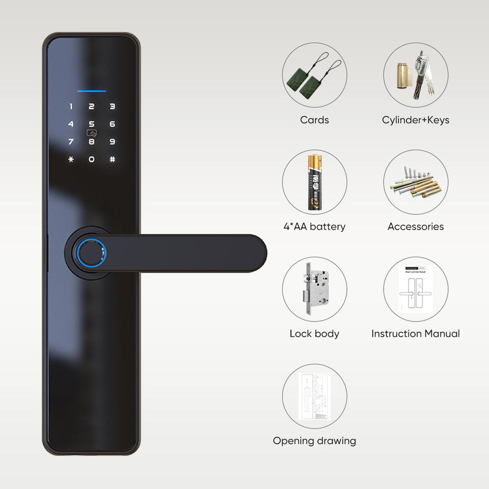 Serrature Intelligenti per Porte con Maniglia Elettronica Digitale di Sicurezza Tuya Ttlock con Impronta Digitale, Chiavi e WiFi