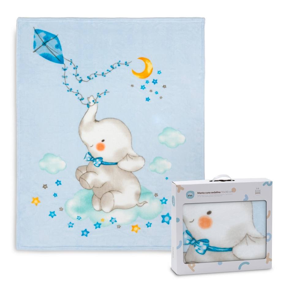 Coperta per lettino Sedaline Classic Blue 110x140 cm in peluche intrecciato con motivo cartone animato Elefante Cometa Mod. Cometa Elefante