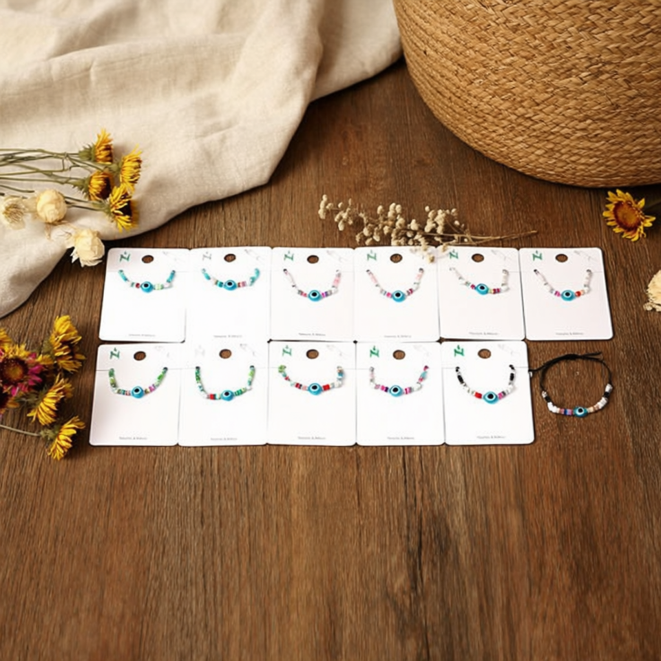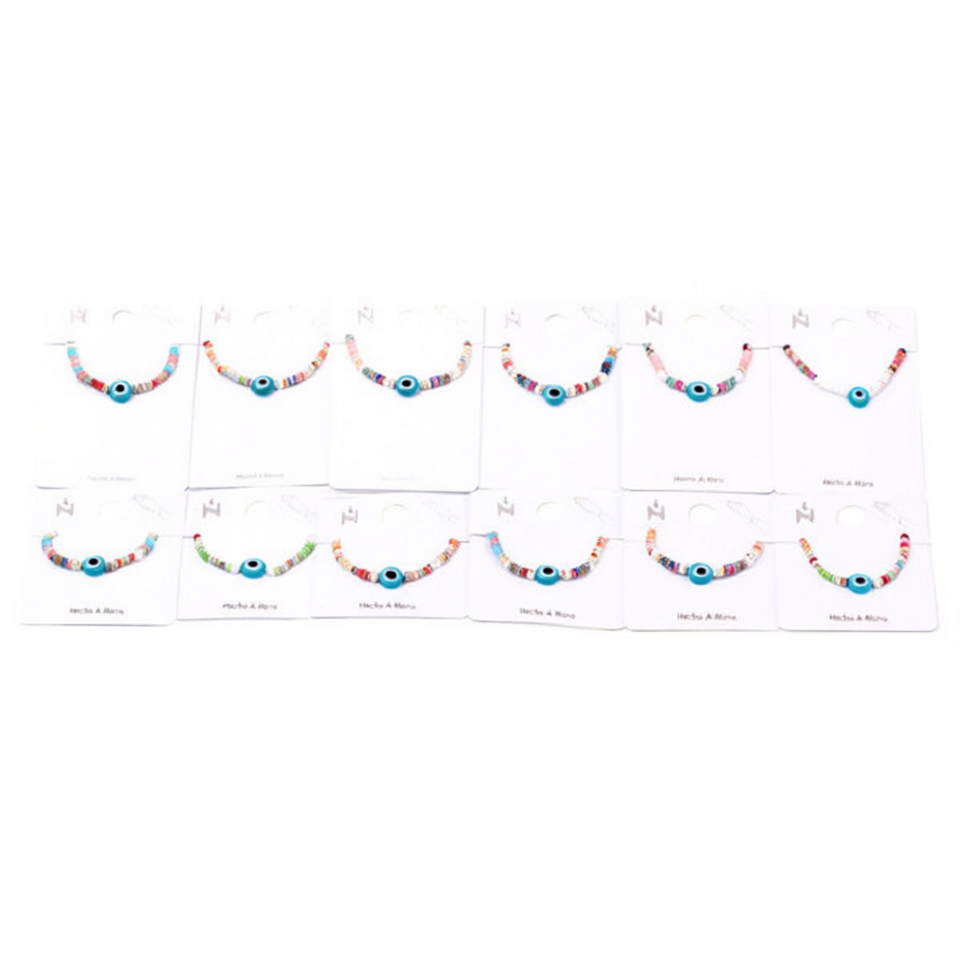 Set di 12 Braccialetti con Perline, Acciaio Inossidabile, Fatti a Mano, Multicolore, Stile Bohémien con Occhio del Diavolo, Gioielli Unisex