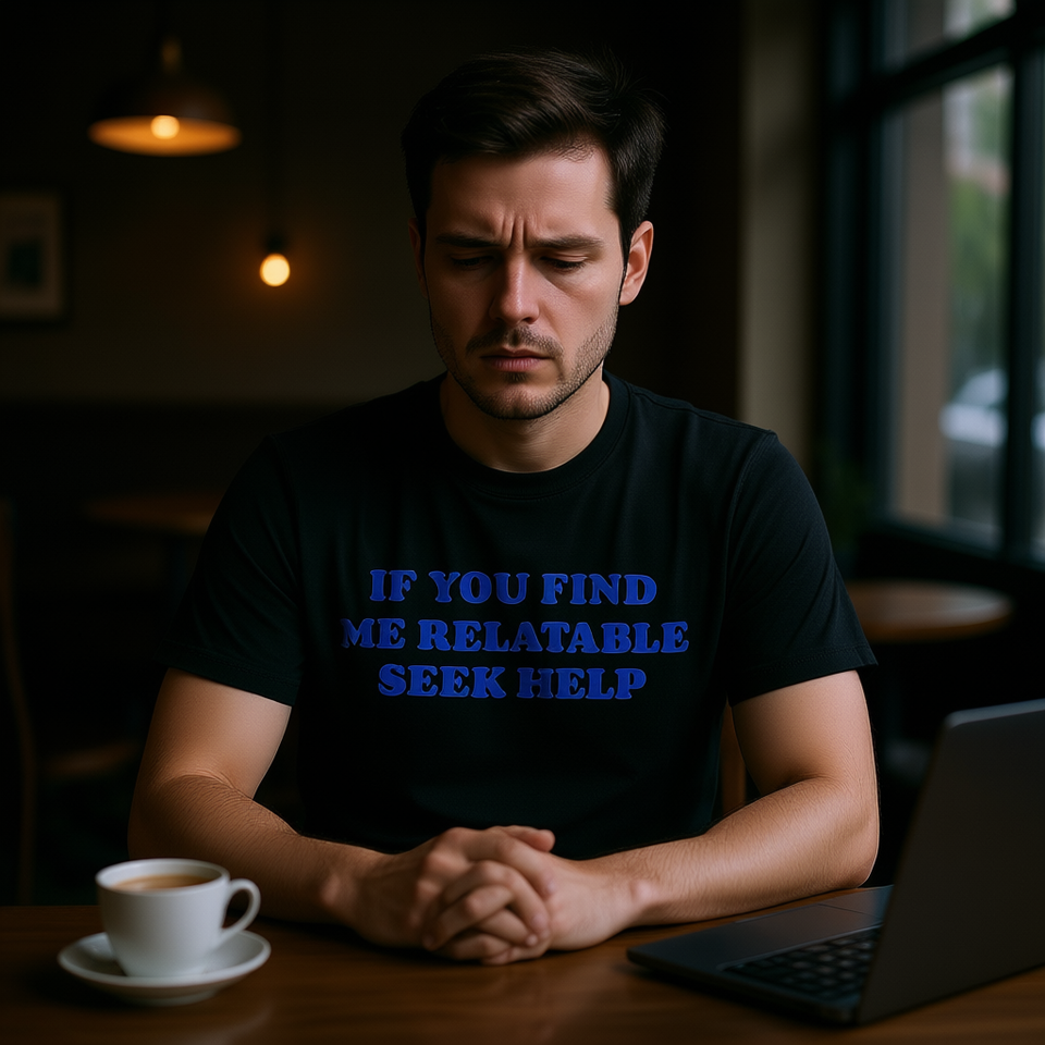 Maglietta 'Seek Help Unhinged' - Divertente, Ironica, Sarcasmica, Idea Regalo Scherzo