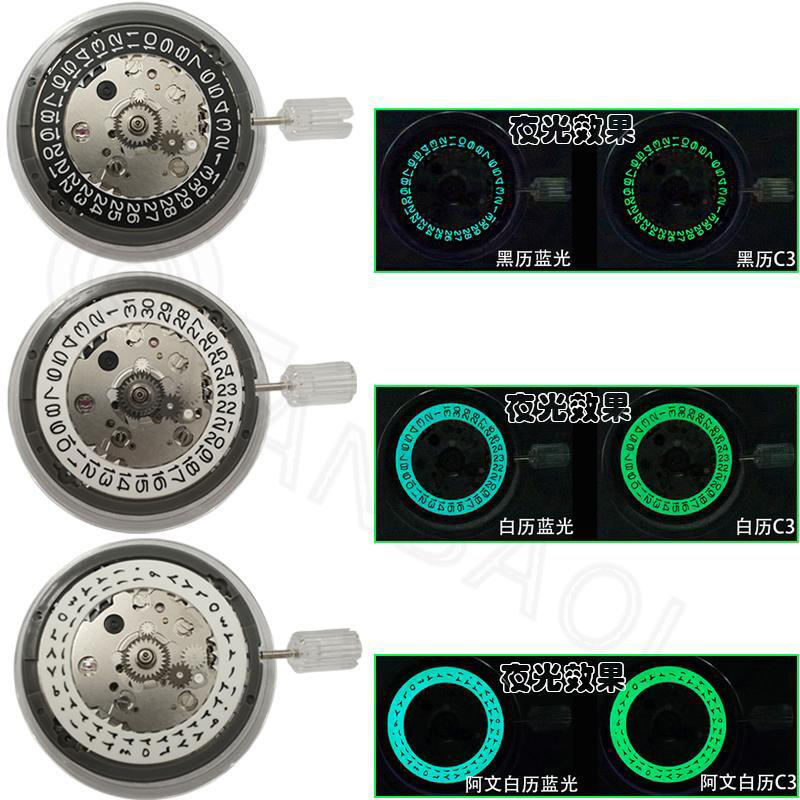 Movimento dell'orologio GMT meccanico Sei-ko nh34 Datewheel bianco nero con quadrante luminoso verde blu 24 meccanismo superiore dei gioielli