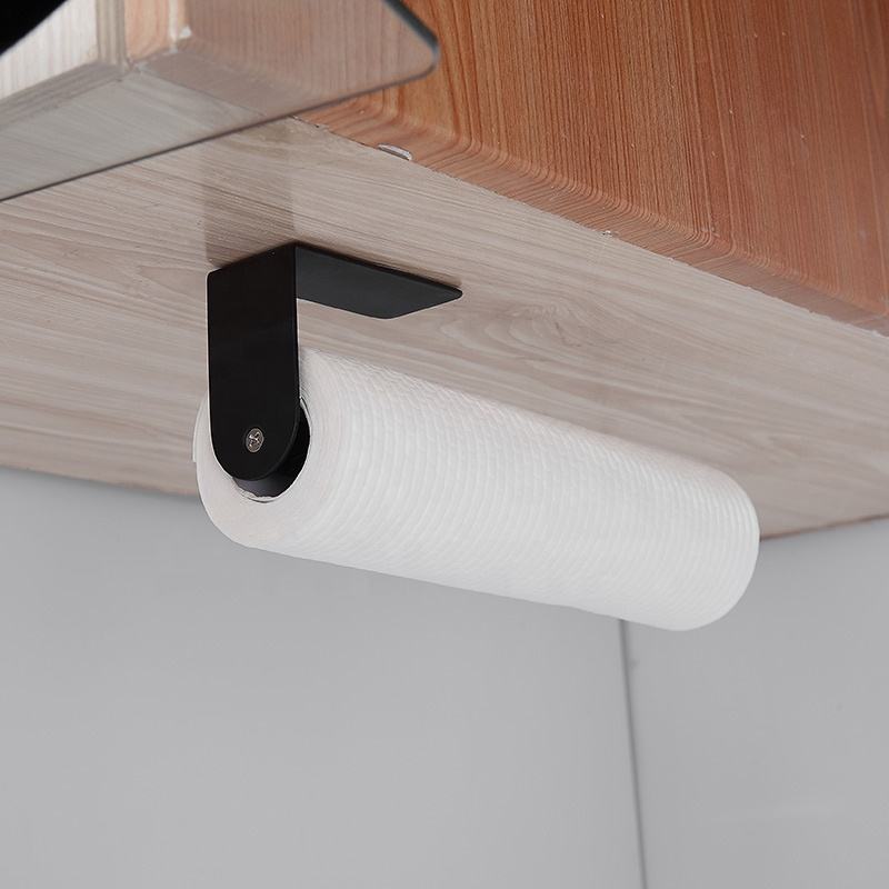 Portarotolo Adesivo Nero per Cucina e Bagno, in Acciaio Inox 304, per Carta Igienica e Pellicola Trasparente