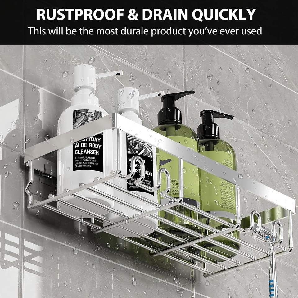 Mensola portaoggetti autoadesiva nera per doccia, organizer da parete per bagno, stile rustico/country