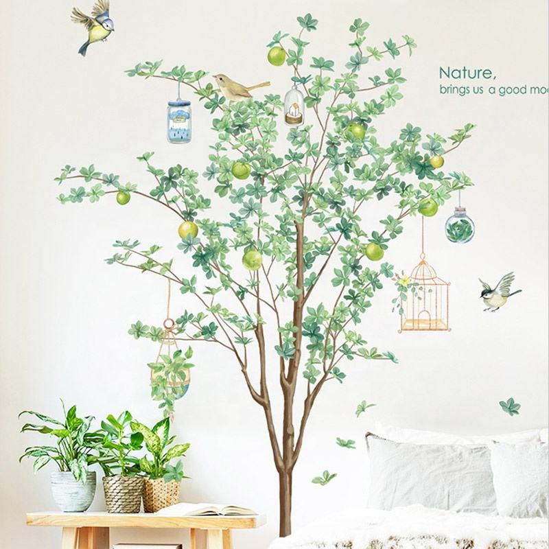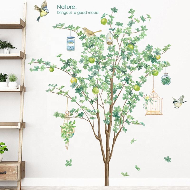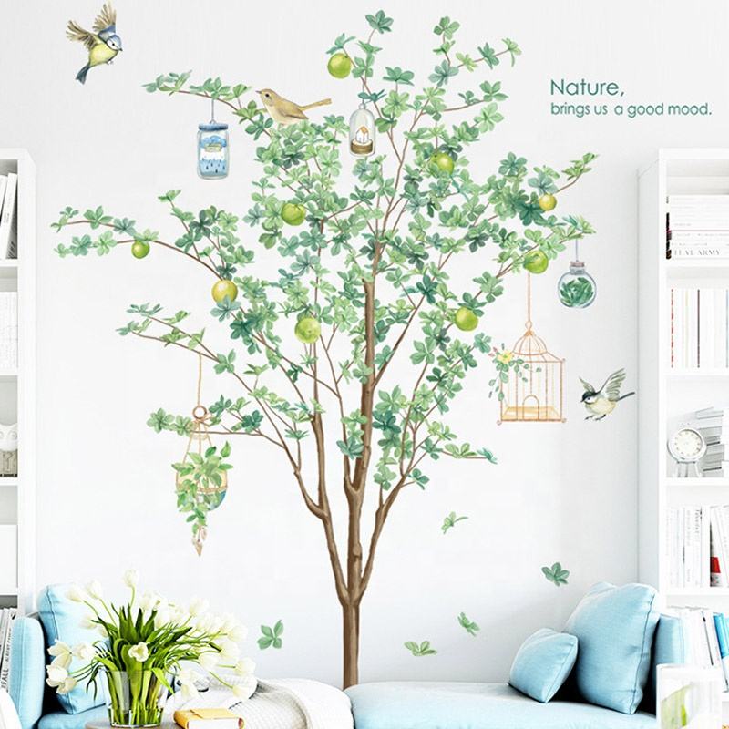 Self Adhesive Green Wall Sticker Tree Bird 3d Wall Sticker for Living Room Wall Sticker Decoration