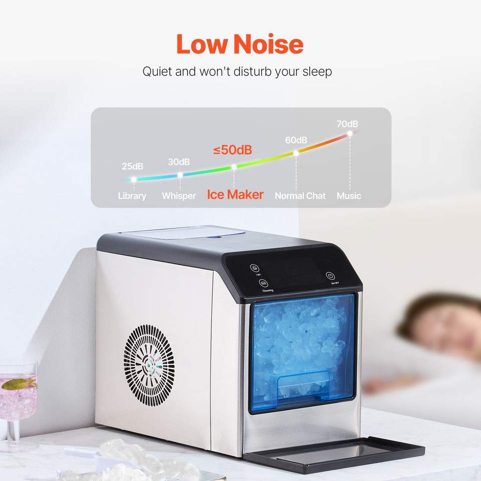 Macchina per Ghiaccio Autopulente da 33 libbre/24H con Costruzione in Acciaio Inossidabile, Paletta per Ghiaccio Masticabile e Vassoio Raccogligocce