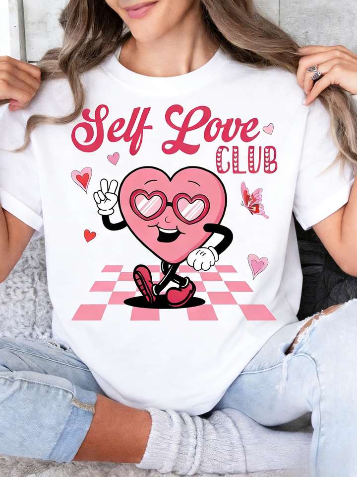 Self Love Club Pink T-Shirt Women Short Sleeve Printed Cotton Crew Neck Valentine's Day Sarcastic Humor Spring Summer Jersey