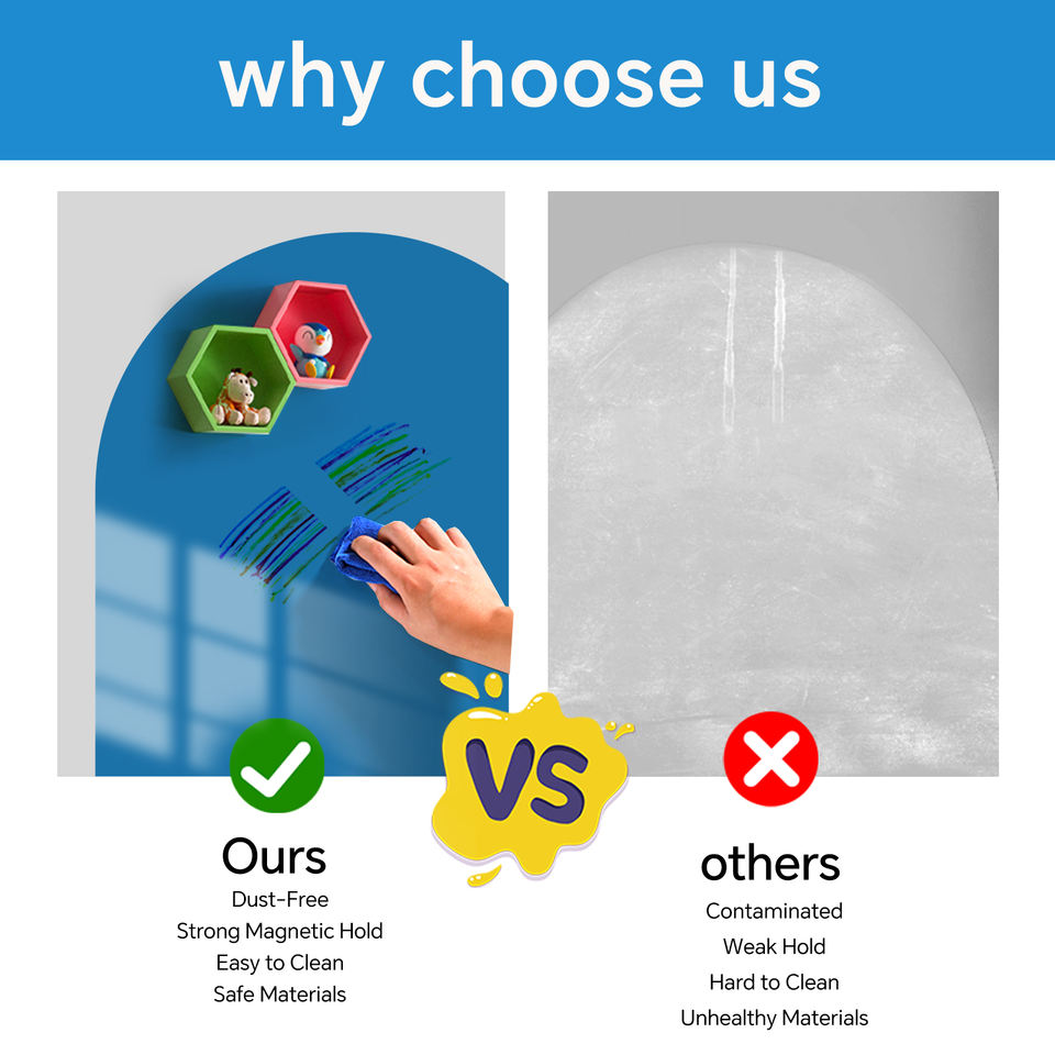 Vantaggi:Facile installazione, morbida, scritta in gesso, cancellabile a secco