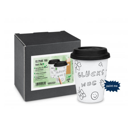 Selfmade Mug-Luck Porcelain 15oz Stoneware Ceramic Water Mug with Lid Dishwasher Microwave Safe Includes Colored Pencils Boxed