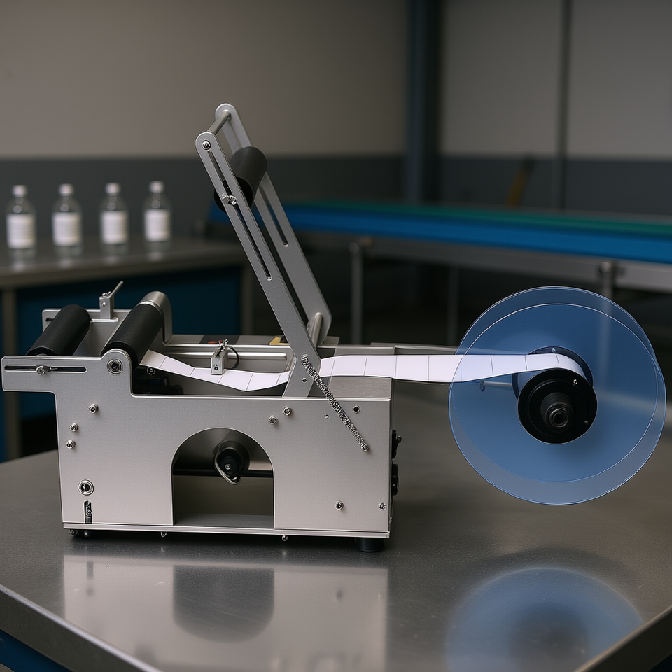 Semi Automatic Electric Bottle Label Applicator 20-50pcs/min 0.78-4.72 Inch Diameter With Pressing Bar