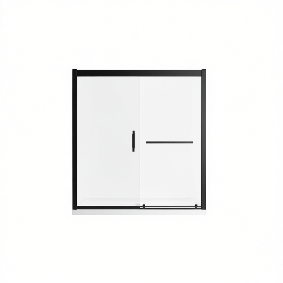 Porta Scorrevole in Vetro Semi-Frameless per Vasca da Bagno 56-60 pollici L x 57 pollici H Nero Opaco Vetro Temperato 10mm Design Minimalista per Bagno