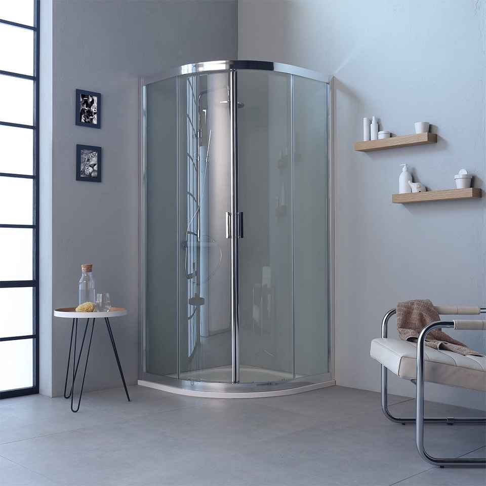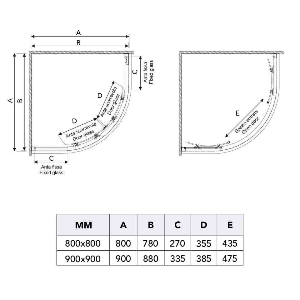 Box Doccia Semicircolare 90x90 H195 con Porta Scorrevole Trasparente e Profili Piatti Modello Ferrara