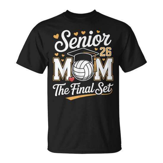T-shirt Senior Mom Class Of 2026 Volleyball The Final Set per adulti, girocollo, manica corta, unisex