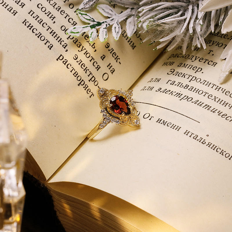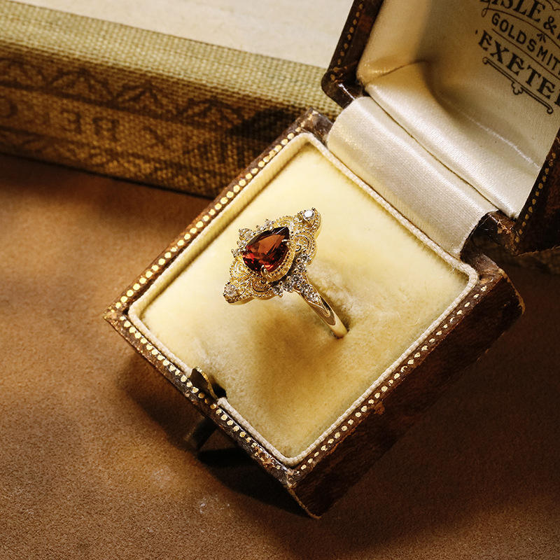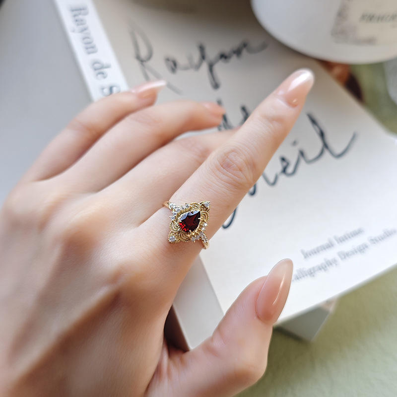 Palazzo splendente della regina del partito Senior che ripristina le antiche pietre preziose anello da dito di lusso gocce d'acqua anello rosso granato