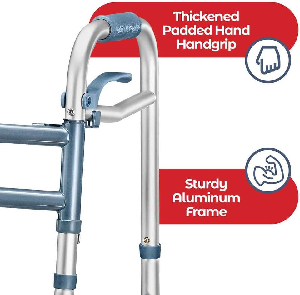 Seniors Aluminum Lightweight Walker With Wheels Walker Adjustable Width and Height, Folding Walker With Arm Support for Disabled