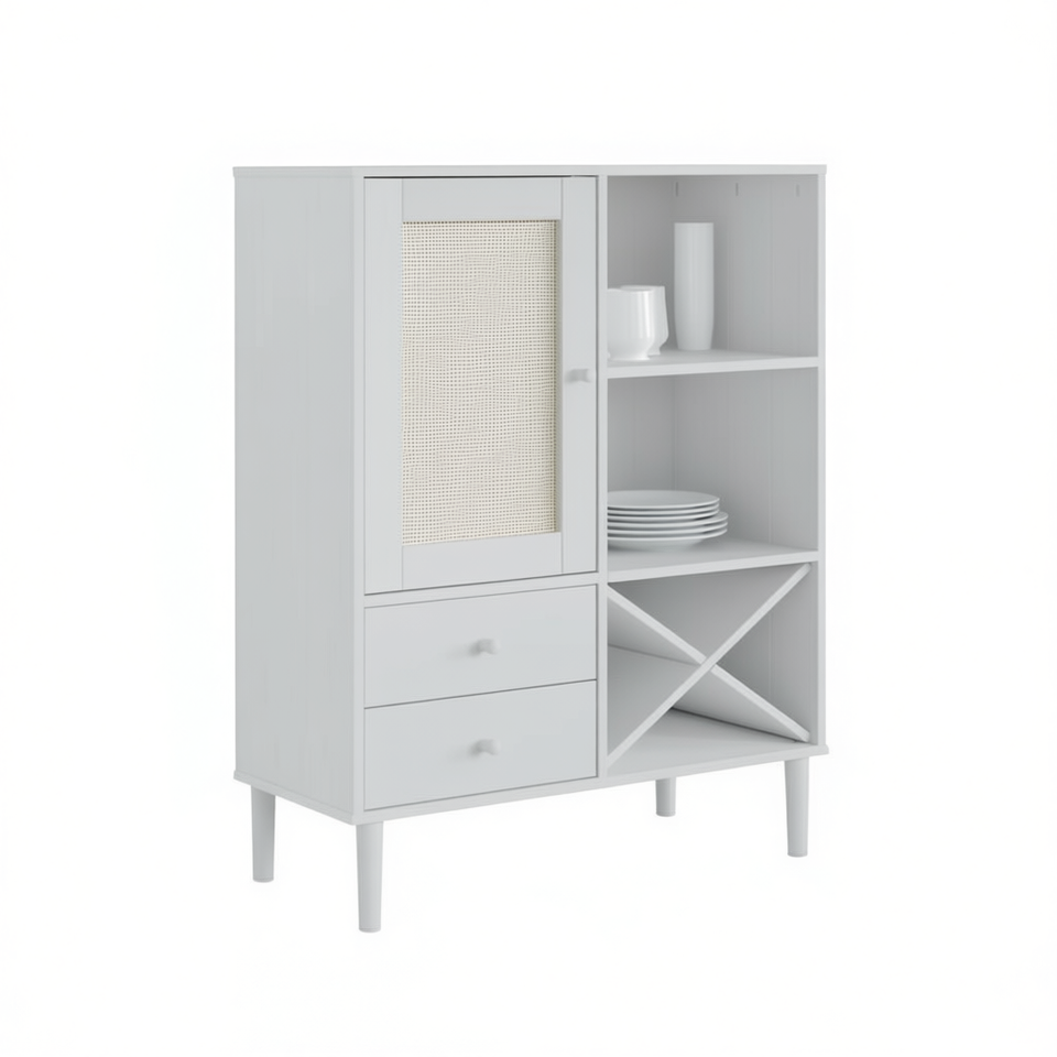 Mobile da Soggiorno Senja in Legno Massello Bianco 35.4x15.7x44.1 Pollici, Design Moderno Effetto Rattan