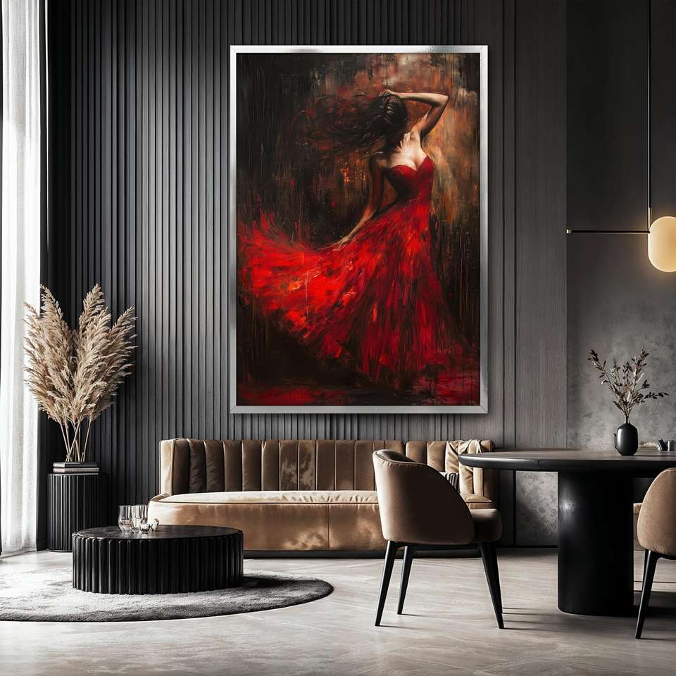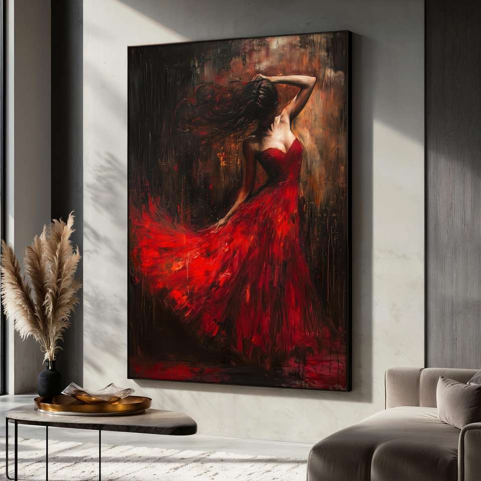 Dipinto su Tela di Donna Sensuale in Abito Rosso, Arte Murale di Danza Emozionale per Camera da Letto, Decorazione Femminile