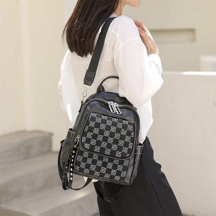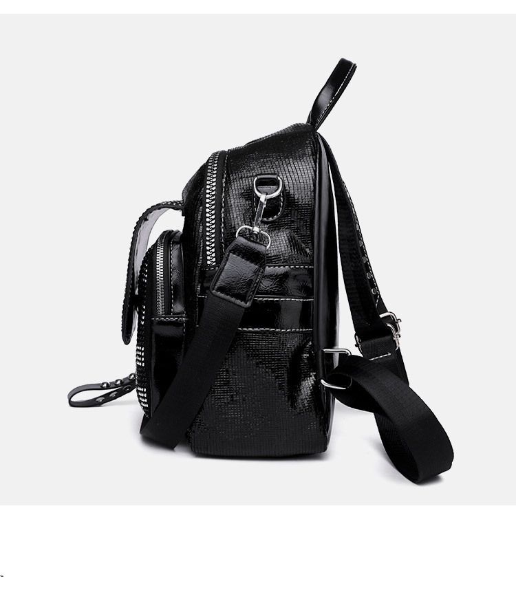 Borse Scolastiche in Pelle PU Nera con Paillettes, Eleganti e Alla Moda per Ragazze Universitarie