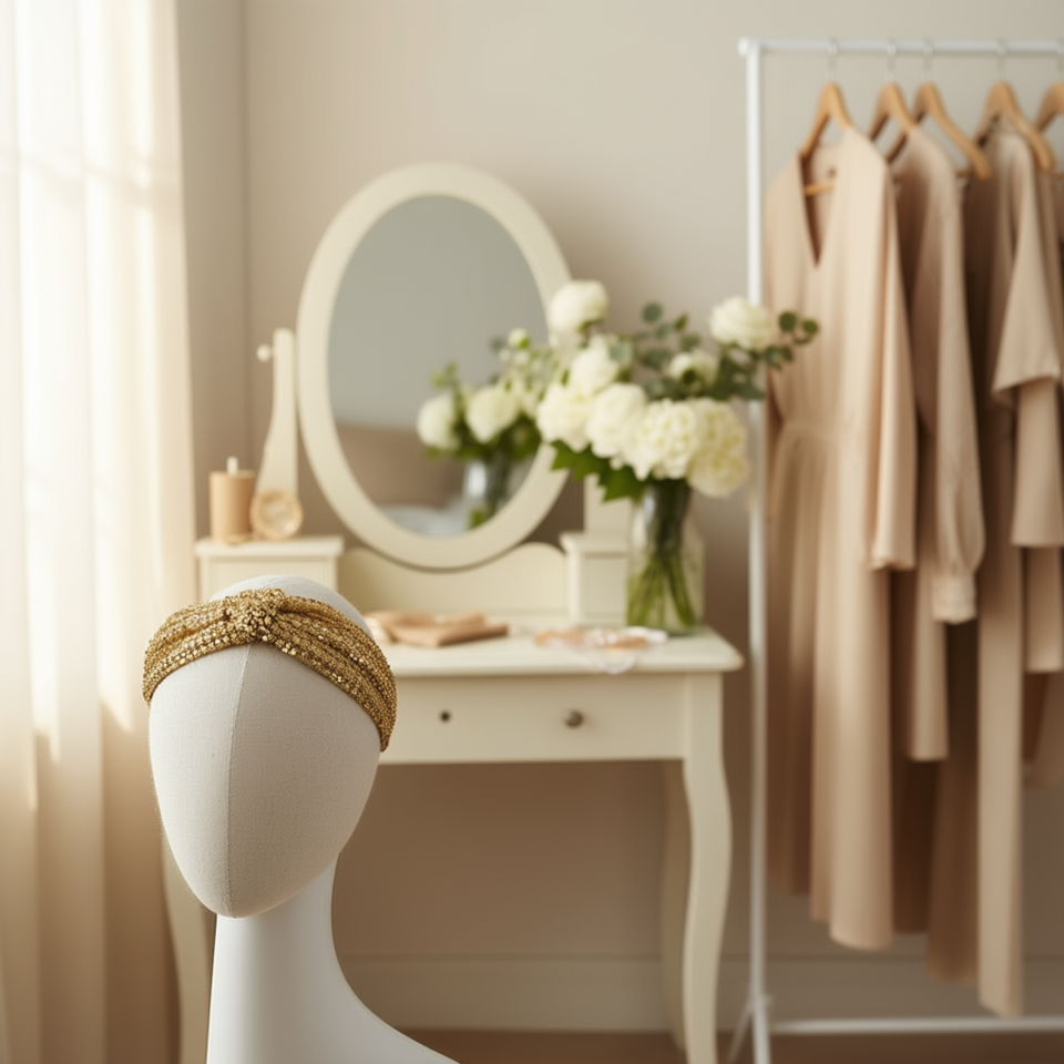 Fascia per capelli con paillettes, elastica, color oro, accessorio moda per donna