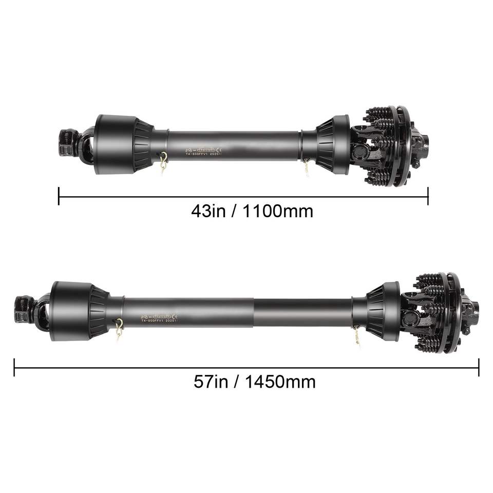 Albero Cardanico PTO per Trattore Serie 5, 1-3/8 pollici, 6 Scanalature, Entrambe le Estremità, Giunti Universali 43-57 pollici, Linea di Trasmissione PTO per Trinciaerba