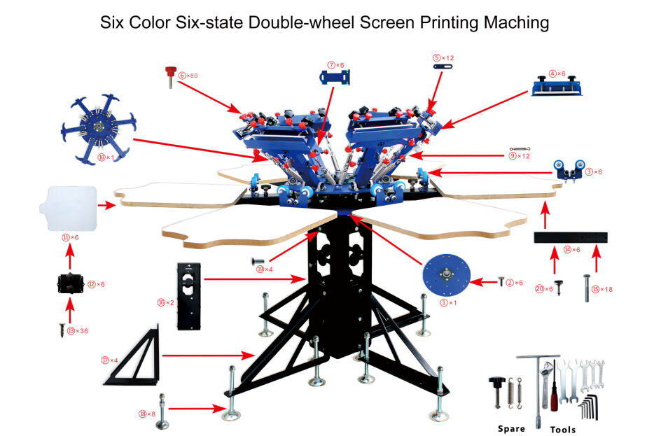 Serigrafia 6 colori 6 stazioni macchina serigrafia manuale con kit per t-shirt Polo juta borsa Non tessuta