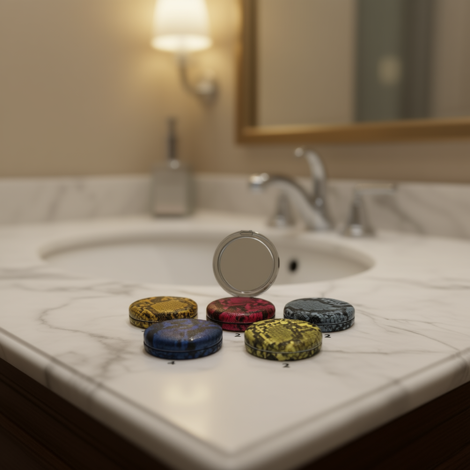 Specchio da Toeletta Serpentine Compatto Rotondo in Plastica Design Moderno Durevole Portatile da Tavolo Ingrandimento 1x per Uso Domestico