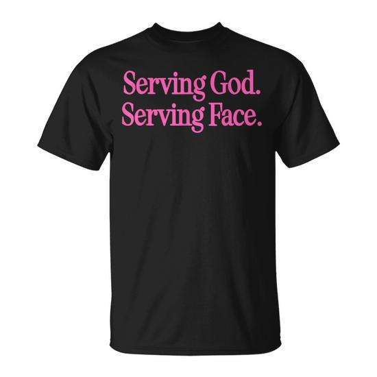 T-shirt promozionale con citazioni cristiane: Servire Dio, servire il Viso di Gesù