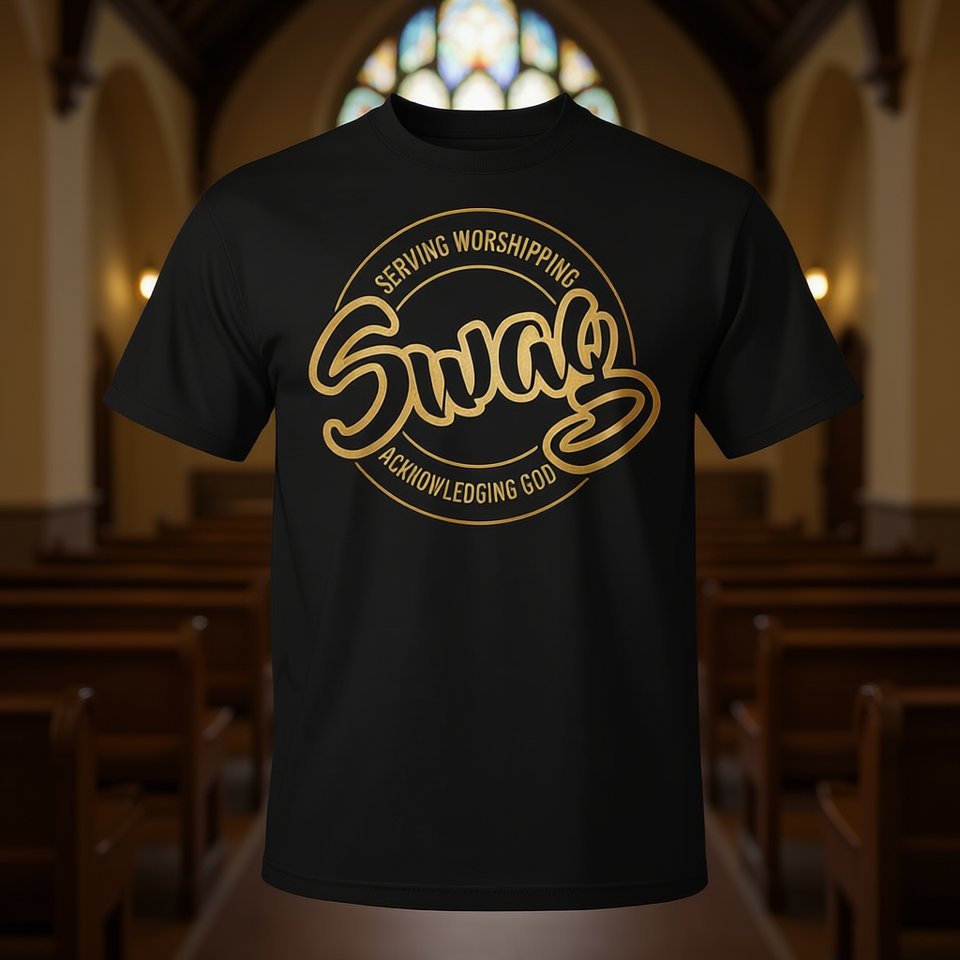 T-Shirt Unisex per Adulti con Stampa Nera e Oro 'Servire, Adorare, Riconoscere il Dio' Regali Religiosi per la Chiesa Collo Tondo Manica Corta